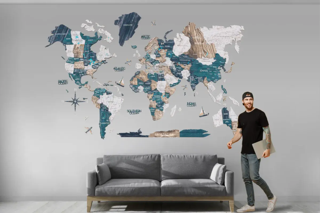 From cozy living rooms to spacious offices, these giant maps combine precision craftsmanship with bold design. Handcrafted from natural wood, each map showcases the world in stunning 3D detail, making it a statement piece that inspires wanderlust and conversation.